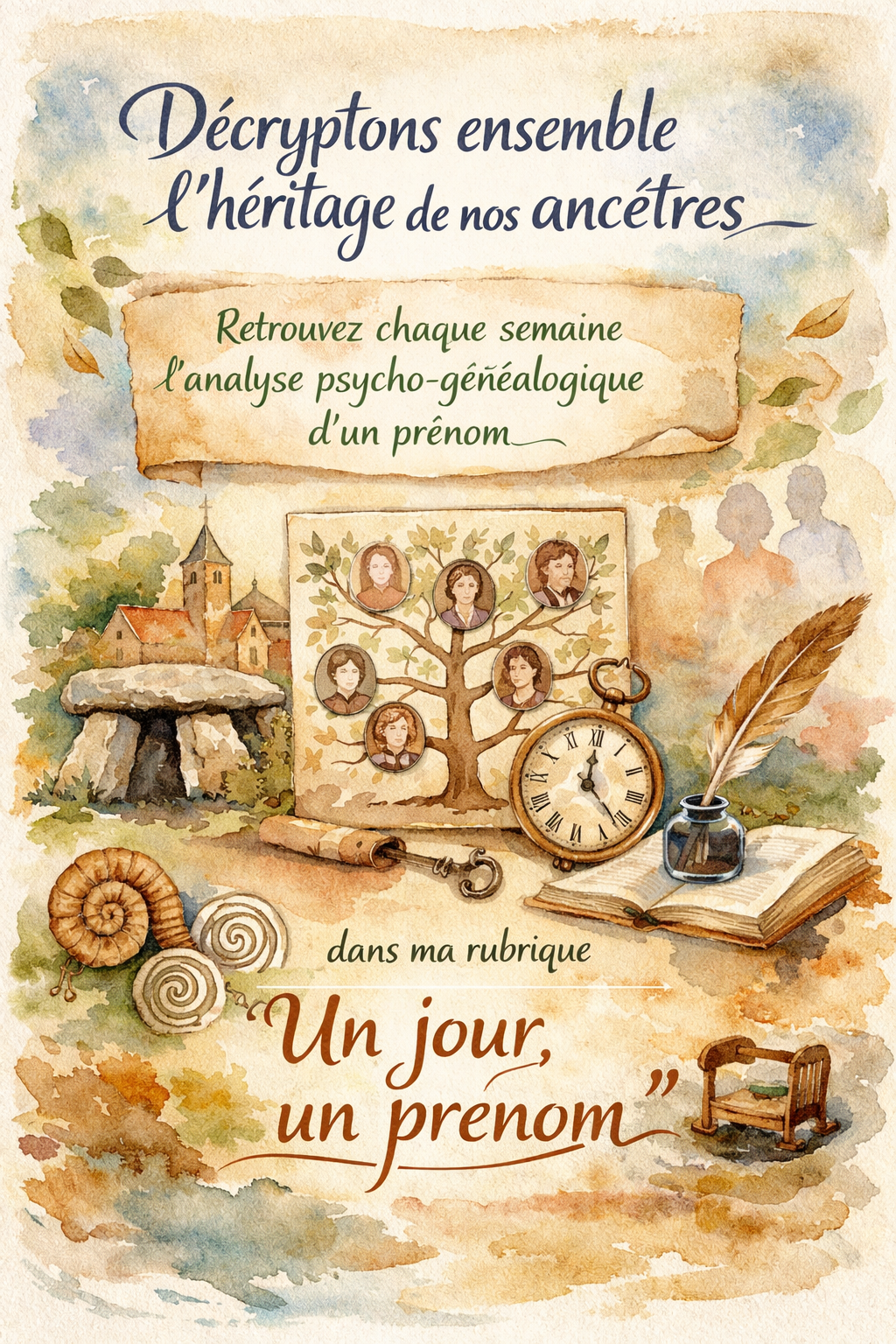 Décryptons ensemble l'héritage de nos ancêtres : retrouvez chaque semaine l'analyse psycho-généalogique d'un prénom dans ma rubrique 'Un jour, un prénom".