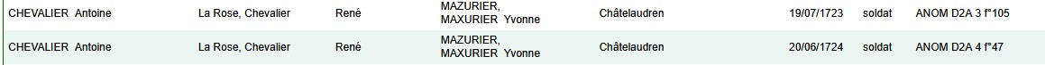 L'année suivante, les rôles s'inversent devant le Conseil Supérieur. Le 12 février 1746, c'est Antoine François Chevalier qui occupe la place de demandeur dans un litige l'opposant à un autre habitant, Nicolas Hébert.