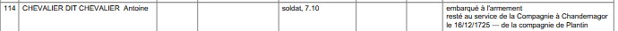 Les archives de la Mémoire des Hommes indiquent qu'il est resté au service de la Compagnie des Indes à Chandernagor, en Inde, jusqu'au 16 décembre 1725.