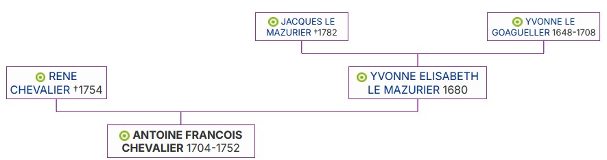 Alors qu'Antoine François n'est encore qu'un jeune enfant âgé de trois ans, la famille est marquée par un premier grand deuil lié à cette lignée maternelle. Le 4 janvier 1708, sa grand-mère, Yvonne Le Goagueller (ou Le Goagler), s'éteint à Plélo.