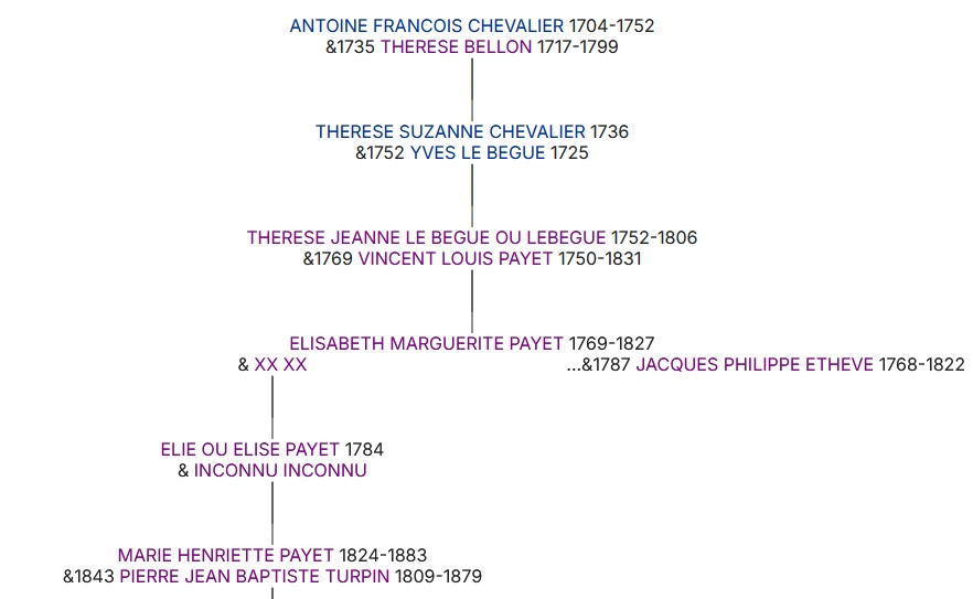 Le 7 août 1736, alors qu'il est âgé de 31 ans, la joie entre au foyer avec la naissance de sa fille : Thérèse Suzanne Chevalier, qui est mon aïeule.