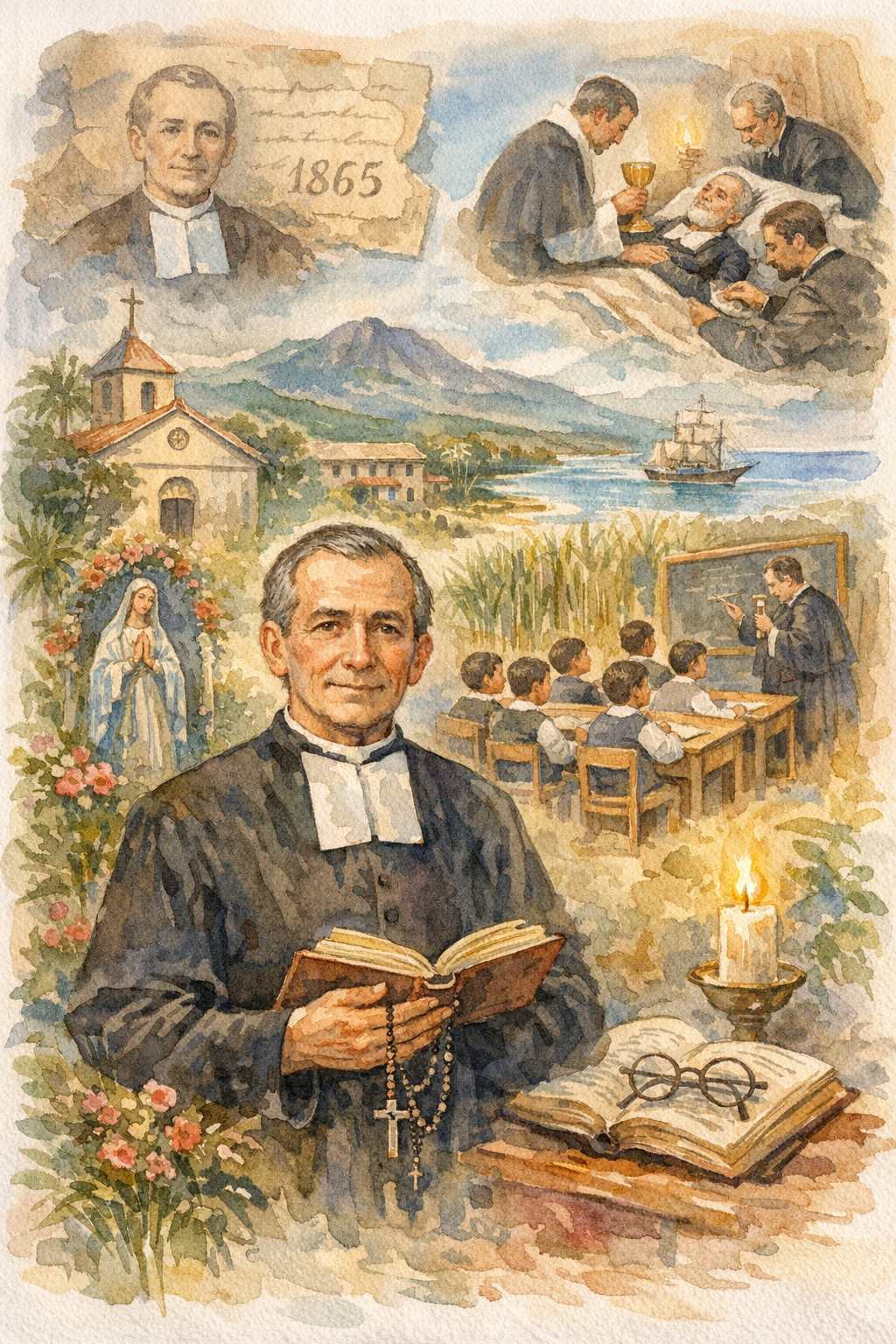 Parmi les vocations écloses de cet Institut dans cette belle colonie, celle de ce cher confrère fut une des plus sérieuses et des plus appréciées, Simple et laborieux ouvrier dans le monde, il vivait exactement fidèle à ses devoirs de chrétien, Une victoire, que la grâce divine lui fit remporter dans une circonstance où sa vertu fut exposée à une délicate tentation, fut pour lui le signal de l'appel à la vie parfaite. Il se présenta au noviciat de Saint-Denis, au début de sa vingt-cinquième année, en 1865.