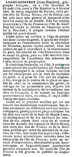 Lislet Geoffroy n'a légalement acquis son nom complet que quarante ans plus tard, mais il était surnommé « Lislet » en référence à la concession foncière de son père située à l'Ilet Bassin-Plat.