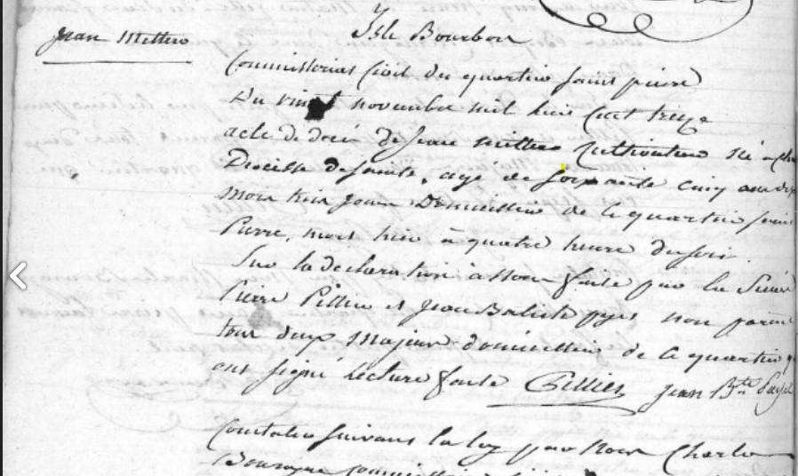 Jean METRAU, également mentionné sous le nom de Jean METRO, s'éteint le 19 novembre 1813 à Saint-Pierre, à l'âge de 57 ans. Il laisse derrière lui une descendance désormais solidement établie à La Réunion, appelée à se développer au fil des générations.
