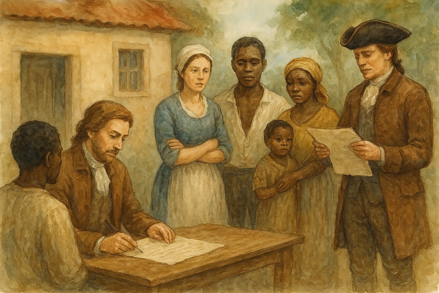 Au XVIIIᵉ siècle, les esclaves étaient considérés par la loi comme de simples biens matériels, au même titre que du mobilier ou des terres. Ils pouvaient être transmis en héritage, offerts en dot lors d'un mariage, ou même donnés en cadeau, parfois aux églises. Derrière ces pratiques aujourd'hui inimaginables, se cache une réalité juridique et sociale encadrée par le Code noir.