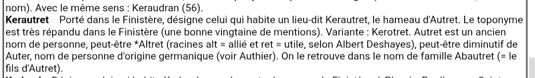 À ce stade de mes recherches, je souhaite faire une mise au point sur le changement de son nom patronymique. Au début du XVIIIᵉ siècle, Kerautret était un lieu-dit ancien de la paroisse de Plougoulm, dans le diocèse de Léon. Ce domaine rural, attesté depuis le Moyen Âge avec son manoir et son moulin, dépendait de l'organisation paroissiale de l'Ancien Régime. À cette époque, il arrivait que l'on indique l'origine géographique d'une personne après son nom dans certains actes civils ou religieux, notamment lorsqu'elle s'éloignait de sa région natale, bien que ce ne soit pas une pratique systématique.