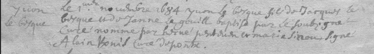 Le 1er novembre 1684, alors que l'automne enveloppe les ruelles de Pont-Croix, dans le Finistère, naît Yvon Le Besque. Fils de Jacques Le Besque et de Jeanne Le Gouill, il pousse ses premiers cris dans une Bretagne profondément ancrée dans ses traditions et sa foi. À cette époque, rien ne laisse présager que cet enfant du pays de Cornouaille finira sa course à des milliers de lieues de sa terre natale.