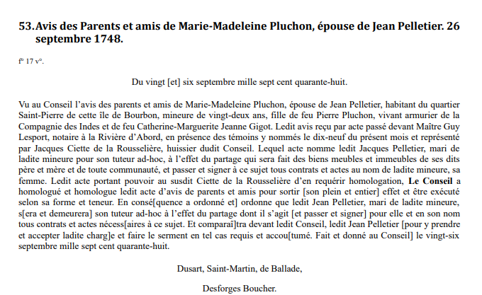 Malheureusement, les archives restent silencieuses sur leur existence quotidienne dans cette commune réunionnaise. Ce que nous savons, c'est qu'après le décès de Pierre - dont nous ignorons la date précise - Catherine se retrouve veuve dans cette terre lointaine.