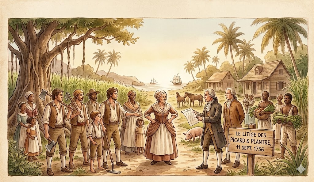 Plonger dans les archives judiciaires, c'est s'inviter à la table d'une famille en pleine crise, et l'arrêt du 11 septembre 1756 nous offre une immersion saisissante dans l'intimité mouvementée des colons du XVIIIe siècle. Ce litige oppose deux fratries nées d'une même mère, Louise Colin, mais de deux pères différents : Jacques Picard et Guillaume Plantre. L'histoire s'enracine dans un passé lointain, au moment où Louise, devenue veuve de Jacques Picard, se remarie avec Guillaume Plantre sans qu'aucun inventaire ni partage officiel des biens de sa première union ne soit effectué. Cette omission juridique, fréquente à l'époque, devient une véritable bombe à retardement trente ans plus tard, au décès du second époux.
