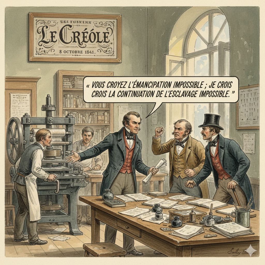 La presse locale devient alors le théâtre d'un affrontement d'idées entre partisans du statu quo et défenseurs de la liberté. Ce débat de 1841 annonce les grandes discussions qui mèneront, quelques années plus tard, à l'abolition de l'esclavage en 1848.