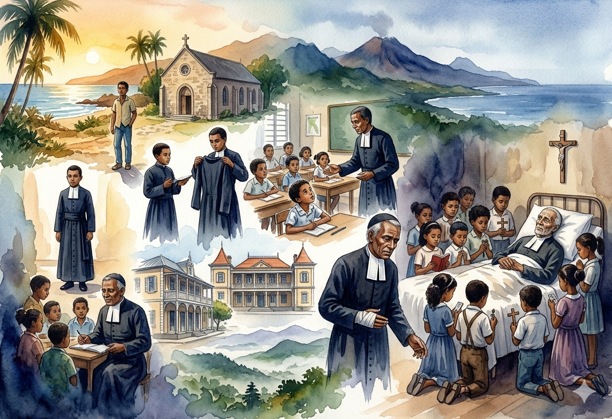 Une fois sa formation terminée, il commence sa carrière d'enseignant à Saint-Denis. Entre 1875 et 1893, son dévouement le conduit dans de nombreuses localités de l'île, notamment à Sainte-Suzanne, Saint-Louis, Saint-André, Saint-Pierre, Saint-Joseph et Saint-Paul. En 1893, il est envoyé à l'île Maurice où il exerce à Curepipe et Port-Louis jusqu'en 1905. Reconnu pour son caractère vif mais profondément bienveillant, il se consacre entièrement au progrès intellectuel et spirituel de ses élèves, veillant à ce que l'ordre et le travail règnent dans ses classes.